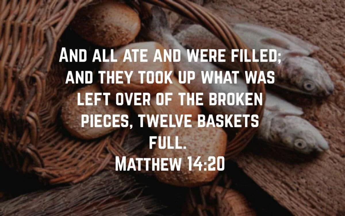20 그들은 모두 배불리 먹었다. 남은 부스러기를 모으니, 열두 광주리에 가득 찼다.